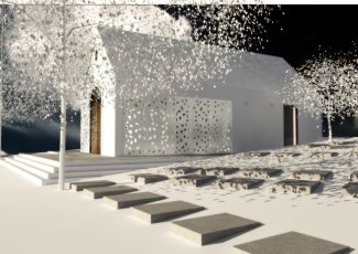 Soutěžní návrh smuteční síně na řepský hřbitov v Praze. Síň je situována při příjezdové komunikaci, na což byl kladen důraz i samotným zadáním. Hlavní vstup by měl uzavírat lipovou alej /přístupová pěší komunikace/. To je patrné z vizualizace zákresu. Objekt má jednoduchý stavební program. Na hlavní vstup přímo navazuje smuteční síň otevřená až do střešního prostoru. Odtud je přístupný exteriérový prostor, na který se vážou wc a sklad, přístupný je odtud i podstřešní prostor nad zadní částí. Z druhé strany je pak obsažena místnost určená k administrativní činnosti. Konstrukčně by se mělo jednat o betonovou skořepinu laděnou do bílé barvy. Smuteční síň má před prosklené boční stěny osazeny plechové okenice s otvory ve tvaru padajících listů /strom jako symbol života a smrti/. Jednoduchý objem stavby má také komunikovat s níže položenou kapličkou.