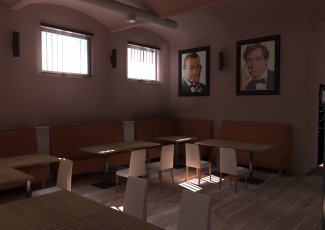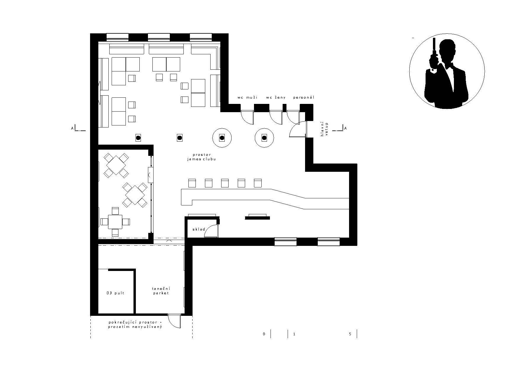 Návrh se zabývá úpravou prostoru pro nově plánovaný club v Hostinném. Základním předpokladem jsou co nejmenší počáteční finanční náklady. K zásahům do stávajících konstrukcí proto nedochází, pouze místnost za pultem DJ je přepažena lehkou SDK příčkou. Dispozice jinak zůstává beze změny. Pozice WC i skladů může být zachována, je funkční. Podle přání je hlavní barvou výmalby cappuccino, která je postavena do kontrastu s tmavou barvou v místech baru a v taneční části.